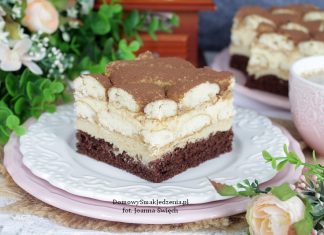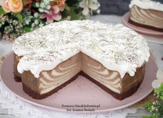 pyszne ciasto czekoladowo truskawkowe z kremem i bezikami