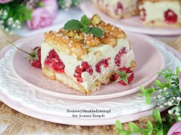 kremowa rozkosz pistacjowa z malinami na słomce ptysiowej