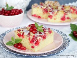 puszyste ciasto z czerwoną porzeczką