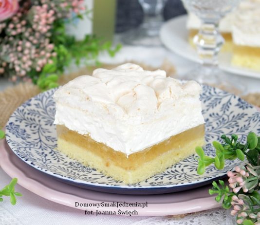 ciasto z kremem, nutą kawy i brzoskwiniami