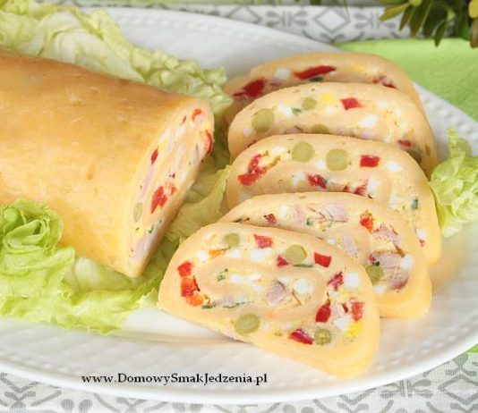 rolada serowa z kurczakiem, pieczarkami i papryką