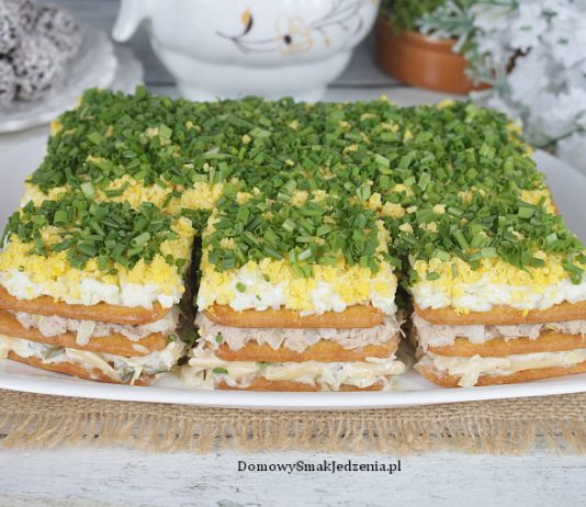 sałatka warstwowa z tuńczykiem na krakersach